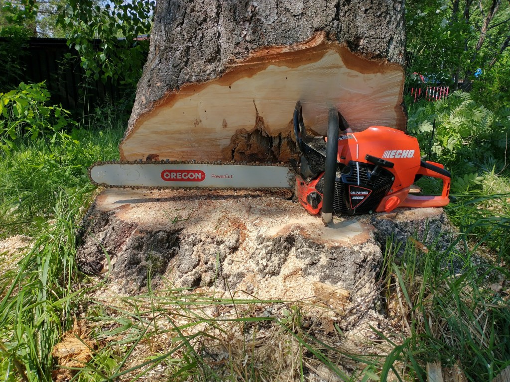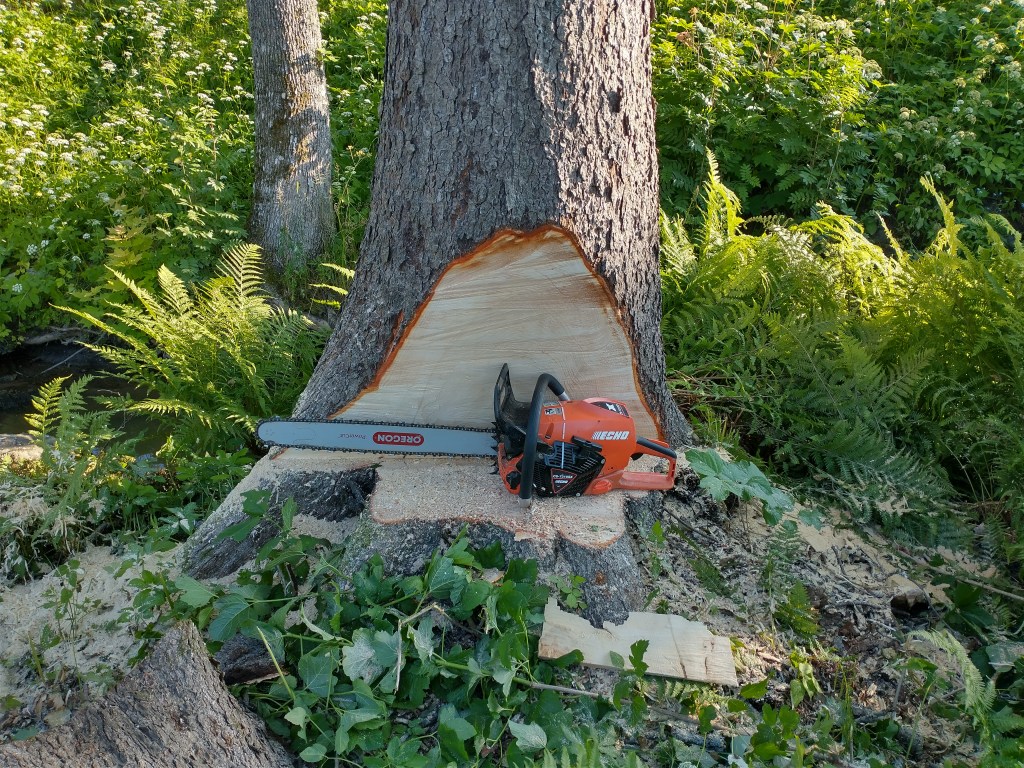 Björken fälld.